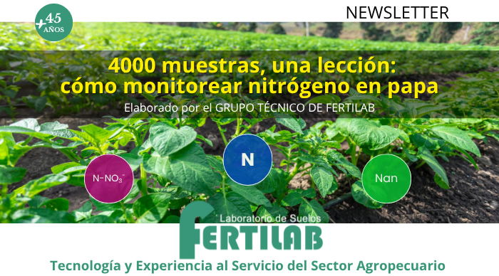 El diagnóstico de N comienza con el análisis de suelo previo a la siembra, considerando tanto la oferta inicial (N-nitrato en 0-40 cm) como la mineralización potencial (mediante indicadores como el Nan en 0-20 cm). Una vez implantado el cultivo, alrededor de los 40-50 días después de la plantación (DDP), cobra relevancia el análisis de pecíolos. Esta herramienta permite conocer el estado nutricional de la planta y ajustar el manejo en tiempo real, evaluando la dinámica entre la demanda del cultivo y el aporte del suelo. En ese contexto, el monitoreo de N-nitrato en pecíolos se vuelve fundamental para decidir, en pleno desarrollo, si es necesario realizar una refertilización.
